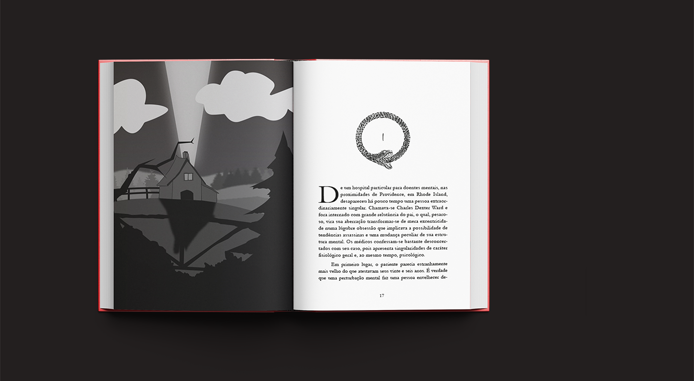 Desenvolvido como projeto acadêmico na Universidade São Judas Tadeu, este trabalho apresenta o projeto gráfico e de diagramação para o clássico de terror cósmico "O caso de Charles Dexter Ward", de H.P. Lovecraft. Fui responsável pela concepção visual da capa e pela diagramação de todo o miolo, buscando traduzir a atmosfera densa, misteriosa e investigativa da narrativa para as escolhas tipográficas e uso do espaço nas páginas. O projeto ganhou vida com as ilustrações exclusivas desenvolvidas por Rodrigo Kamibayashi, Deivid Gustavo e Anna Luiza Madioli, criando uma edição física imersiva e respeitosa ao universo do autor.